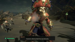 Bilmecelerden biri anahtarı bulmanız için sizi bir adaya sürüklüyor. Adalara üç adet iskelet biri Kaptan isimli olmak üzere kendi aralarında konuştuklarını duyacaksınız. Onları bulduğunuzda saldırın. Kaptan iskeleti kestiğinizde size direk olarak anahtarı düşürecektir.